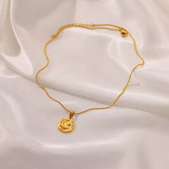 Blue Zircon Star and Moon Necklace for Women – Gold Stainless Steel Jewelry